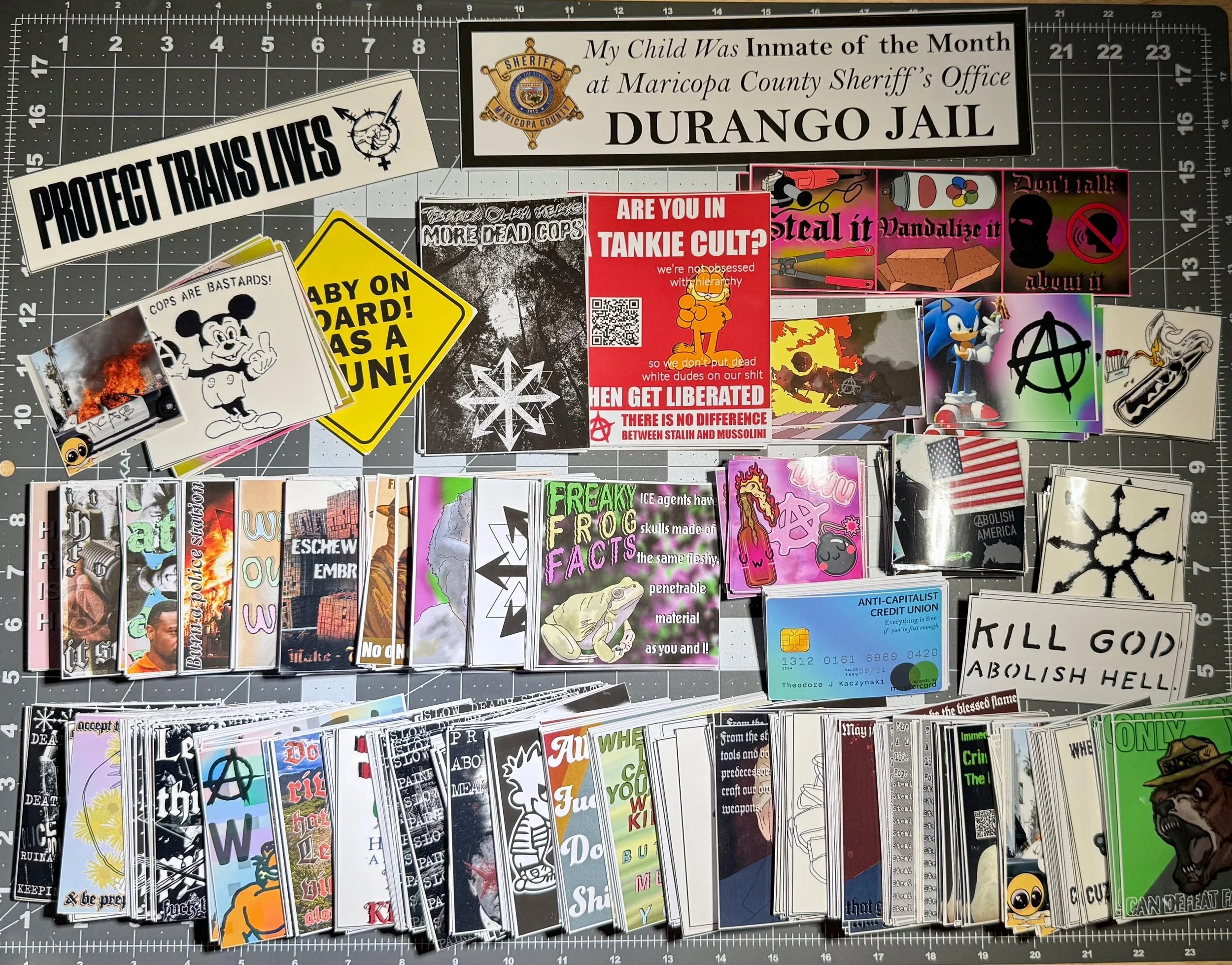 Anarchist sticker packs comprised of a random variety of the stickers found in our other listings and many others not listed (about 140 designs total). We'll be sure you don't get duplicates with your orders, provided we have the variation that matched the quantity. If you want specific stickers, just message us and we'll do our best.